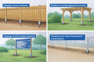 The anchor is driven directly into the ground, ensuring fast installation, accurate post positioning, and reliable load transfer.